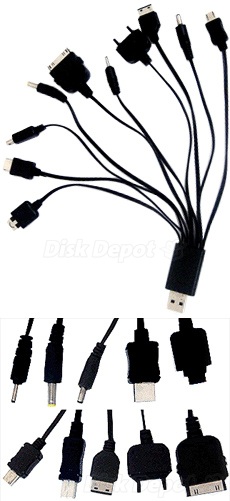 The 10 connectors suit many different types of mobile phone.